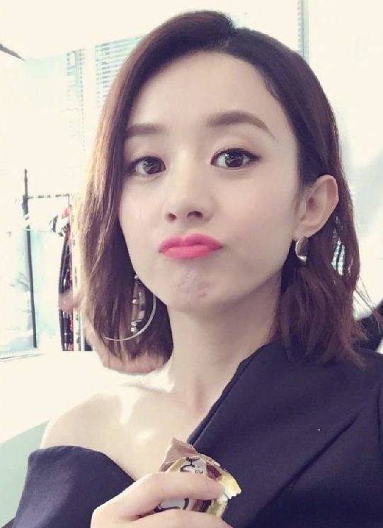 景甜的短发看起来就要比以往短一些,标准的仙女烫发型,空气刘海,甜美的脸蛋,看着很可爱!
