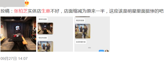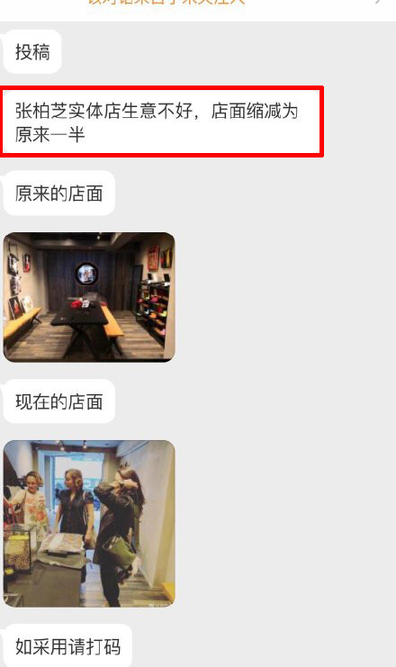 该网友在投稿描述中称,张柏芝的新店生意并不好,因此将店面都“削一半”。