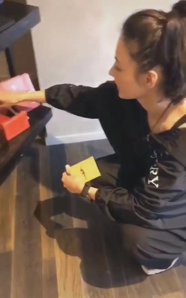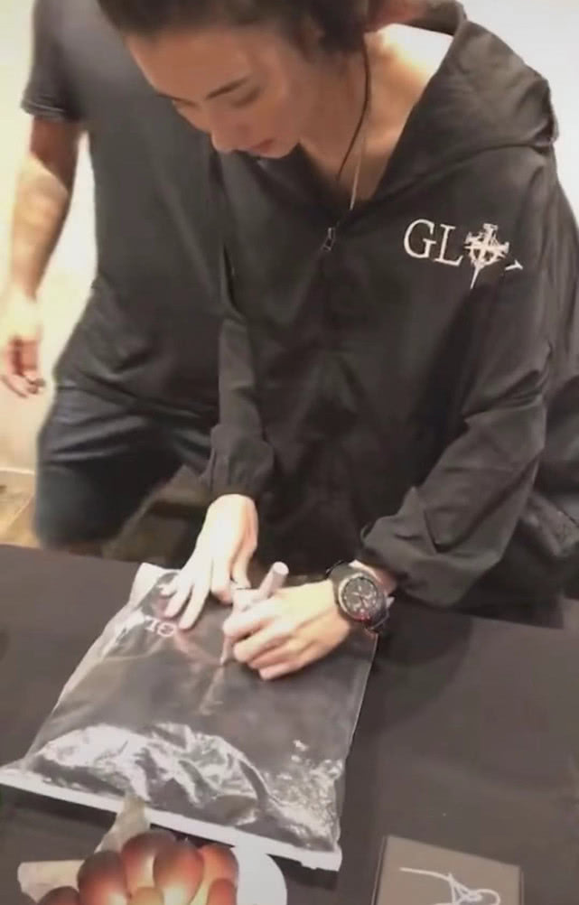 而且在一张照片中我们可见,张柏芝连包裹商品的塑料袋(包装袋)都没有放过,拿起笔在这个塑料包装袋上签上了名。