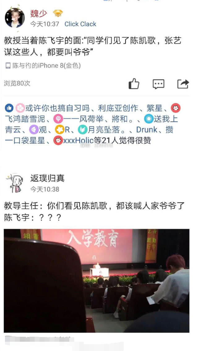 因为爸爸陈凯歌是业内老前辈的缘故,与同学们同龄的陈飞宇刚刚上学便无辜中枪,之所以被教导主任提及,其实也间接证明了陈凯歌在业内的地位。