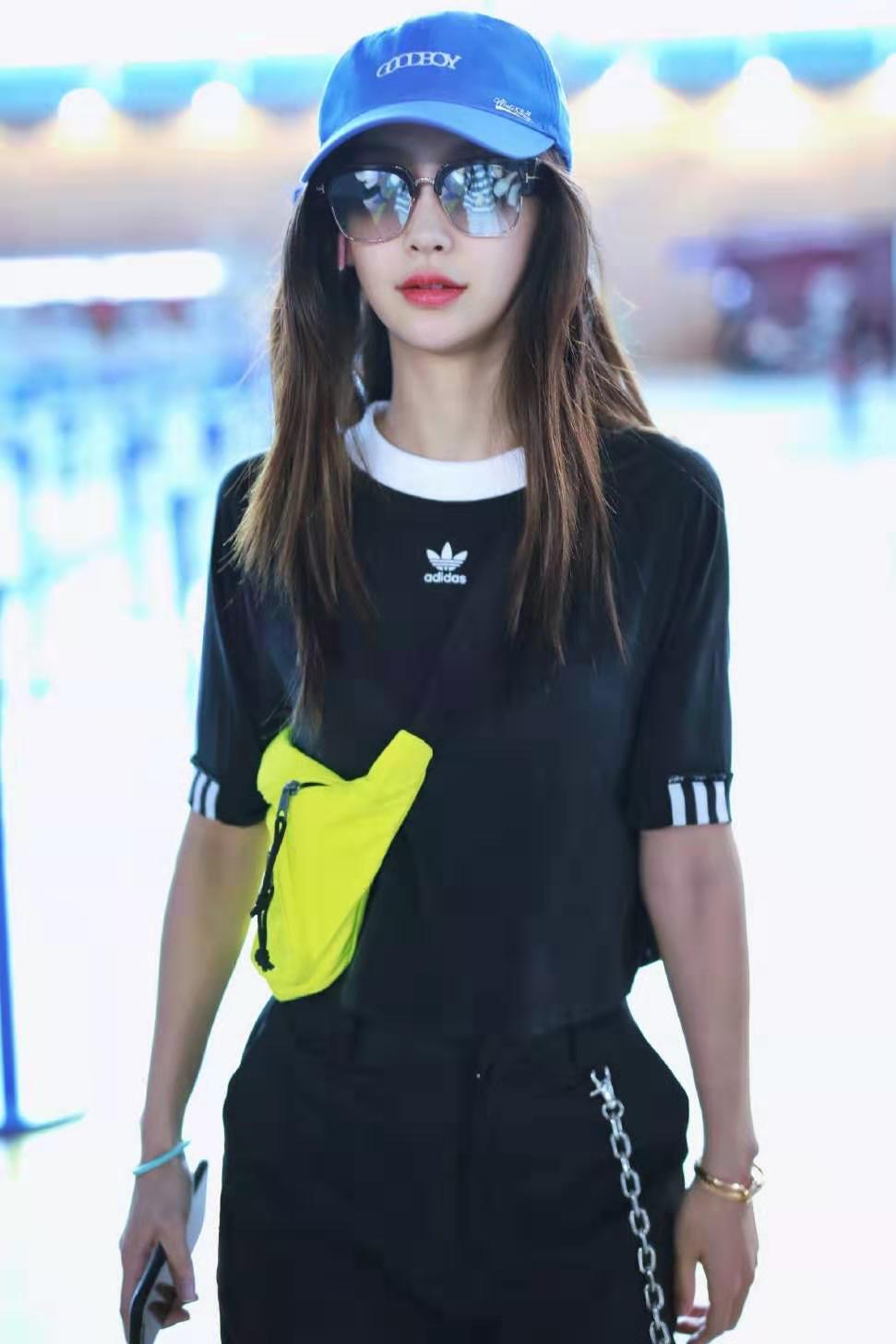 Angelababy的机场私服一直以来都是被大众所称赞的,这日这身比起往常的虽然一身黑色略显低调,但是加上蓝色棒球帽与荧光色胸包的搭配反而显的不用寻常,不用力,不过分,简单大方,化身一个酷girl,轻轻松松赢得大众的眼球。