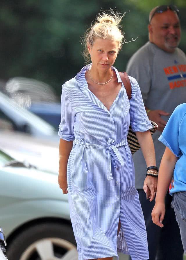 2019年08月27日格温妮丝·帕特洛在纽约汉普顿出行时被记者拍到,一脸素颜,显得有些憔悴。(图片来自ICphoto)