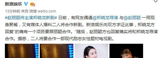 一个打算复出的明星,一个是知名导演,两人在一起的可能性只有一个吧,那就是合作,而且都坐在一起吃饭了,那就说明合作的可能性是很大的,这一次见面,极有可能就是为了谈一下角色,双方心理都有个底儿,而2号该消息被爆出后,媒体求证了双方,而导演和赵丽颖工作人员都确定了这个消息,两人真的要合作了!