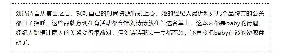 而这个刘诗诗新经纪人此前正是baby的经纪人,和baby当时关系非常好,还一度传出绯闻。