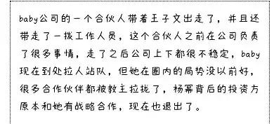 再加上之前网上传出baby公司合伙人带着王子文和一大批工作人员出走,接连不断的人事变动让她公司局势很不稳定,对baby来说绝对是腹背受敌。