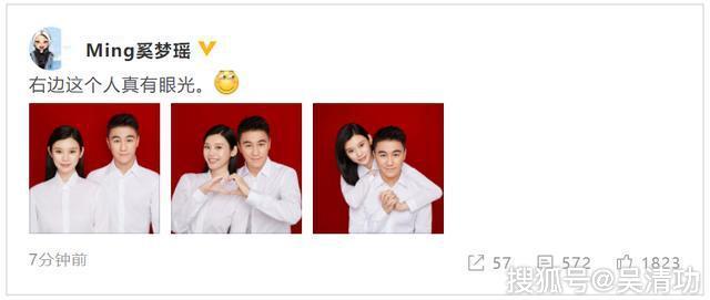 2019年7月4日,奚梦瑶在微博晒出与何猷君的结婚证件照,并配文:“右边这个人真有眼光。”随后,何猷君也在微博晒出两人的结婚证件照,并配文:“左边这个人才有眼光。”