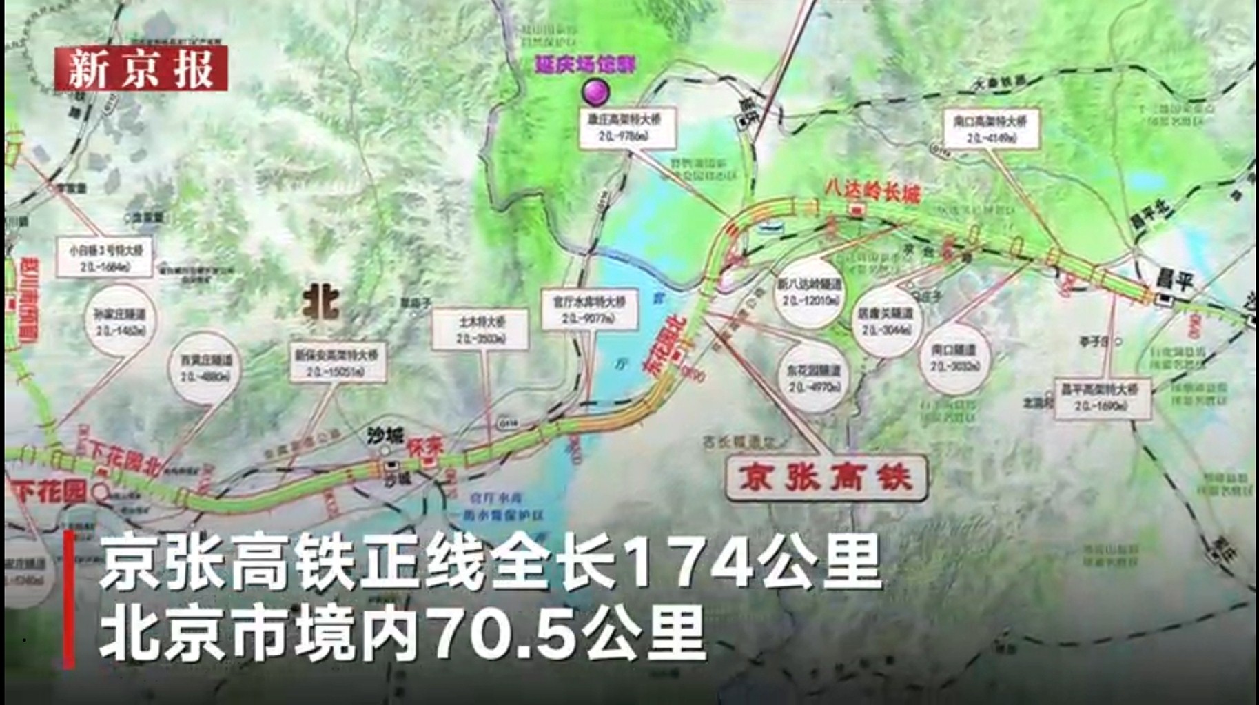 京张高铁起自北京北站,途经清河站、昌平站、八达岭长城站、东花园北站、怀来站、下花园北站、宣化北站、张家口站,全长174公里。