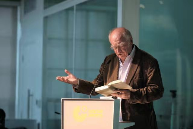 瓦尔泽在朗读《一个寻死的男人》。(歌德学院供图)