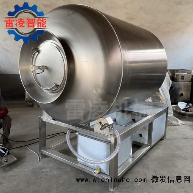 2.真空滚揉机:食品在滚筒内上下翻动,相互撞击、摔打,达到按摩、腌渍的作用。