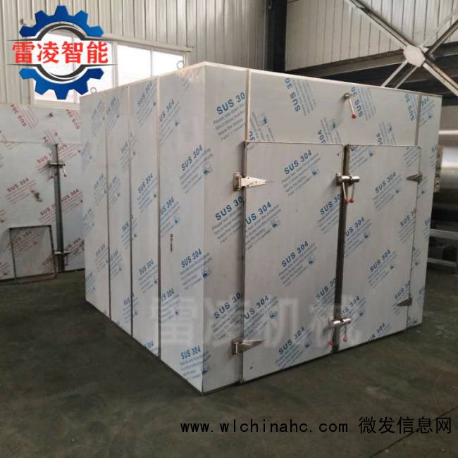 4.烘干机:烘干房设备通过耐温循环风机,采用电加热和蒸汽加热强制循环热风在箱体内循环,增强了热量的传递,提高物料水分的蒸发,缩短了烘干时间,烘干物料均匀。